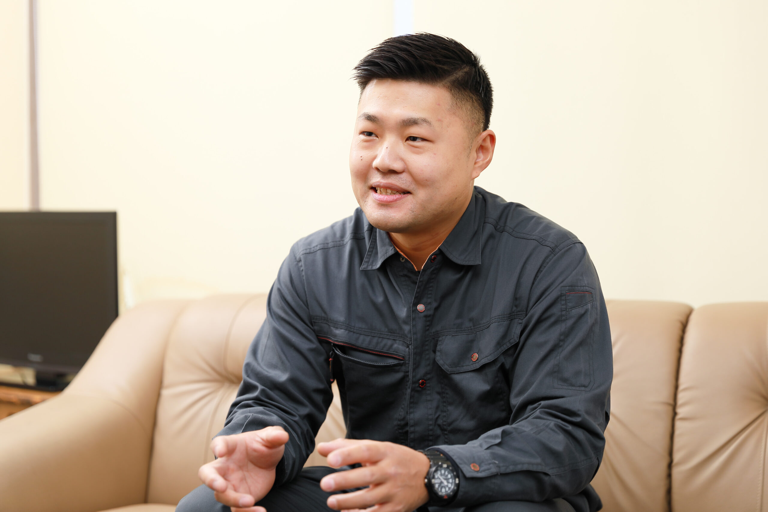 元々消防士を目指していたこともあり、消防や人命に関わる仕事に携わりたいと考えていました。そんな中、現役の消防士に「消防設備士」という仕事があると教えていただき、従事することになりました。間接的であっても陰から人々の暮らしを守るということに対し、単純に「カッコいいやん!」と思う部分もありましたね。